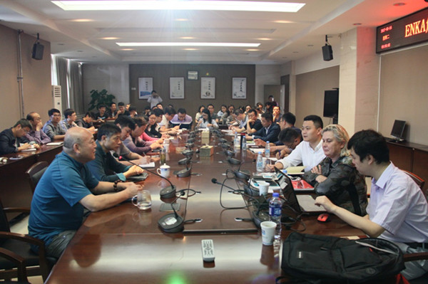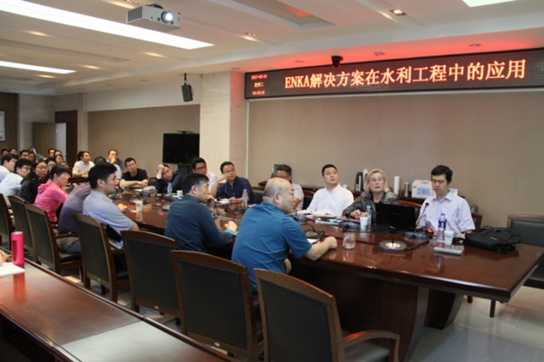 Rebaudo·Aline專家圍繞河道邊坡防護、干性邊坡和巖石坡面防護、膨脹土邊坡防護、湖區防護、排水工程等內容展開,詳細介紹了Enkamat柔性生態護坡技術的功能、特點,并分享了Enkamat的實際應用案例。針對護坡的抗沖性能、施工方法、工程造價、使用年限等問題與設計人員進行了技術交流。
