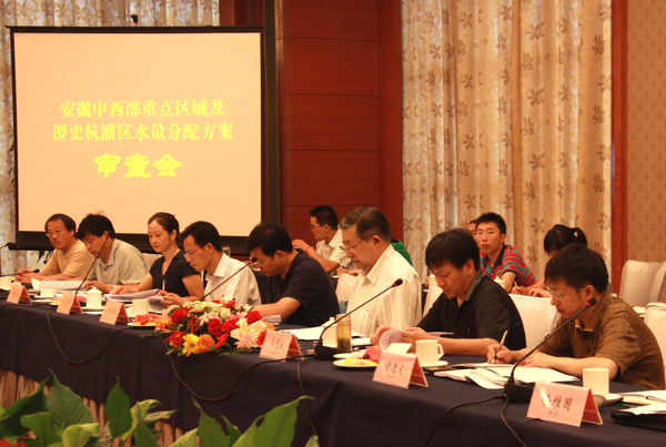 2011年8月7日,安徽省水利廳在合肥主持召開了《安徽省中西重點區(qū)域及淠史杭灌區(qū)水量分配方案》(以下簡稱《方案》)專家審查會,廳長紀(jì)冰出席會議并致辭,中國工程院院士王浩教授、中國工程院院士張建云教授等專家和合肥市、淮南市、六安市、巢湖市人民政府分管市領(lǐng)導(dǎo)及市水利(水務(wù))局領(lǐng)導(dǎo),以及淠史杭灌區(qū)管理總局、龍河口水庫管理處、省水文局等單位領(lǐng)導(dǎo)和代表出席了會議。會議由省水利廳總工金問榮和專家組長王浩院士分別主持,程觀富院長、朱青副院長和院項目組有關(guān)人員參加會議并負(fù)責(zé)匯報。