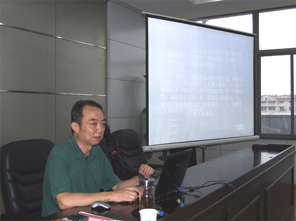 王書記利用自己收集的圖文資料,制做成課件,以“愛國愛黨,愛院愛崗”為主題,為大家上了一堂生動的黨課。他從馬克思的誕生、《共產黨宣言》產生的時代背景、俄國十月革命的勝利、以及蘇聯的成立對中國革命的影響等,詳細介紹了中國共產黨發展簡史。他指出,中國共產黨在90年的奮斗歷程中,創作性地把馬克思主義基本原理與中國革命、建設和改革的實際相結合,經過90年的奮斗、創造、積累,開辟了中國特色社會主義道路,形成了中國特色社會主義理論體系,確立了中國特色社會主義制度。